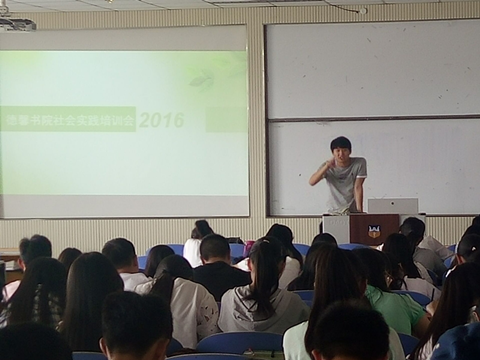 为帮助同学们顺利进行暑期社会实践,5月17日,德馨书院在第一教学楼B401教室举办了社会实践培训会,会议由学生会指导老师杜佳主持,各社会实践团队代表参加。