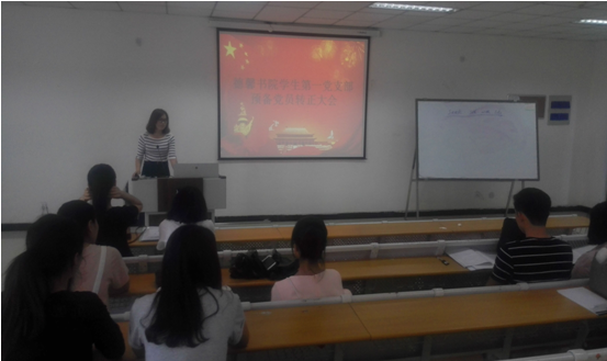 5月27 日,德馨书院学生第一党支部预备党员转正大会在第一教学楼C201教室召开,大会严格按照预备党员转正的规定流程进行,讨论张海涛、王启蒙等7位同志的入党转正问题。此次会议由德馨书院学生第一党支部书记侯永爽老师主持,支部全体正式党员和预备党员同志参加此次会议。