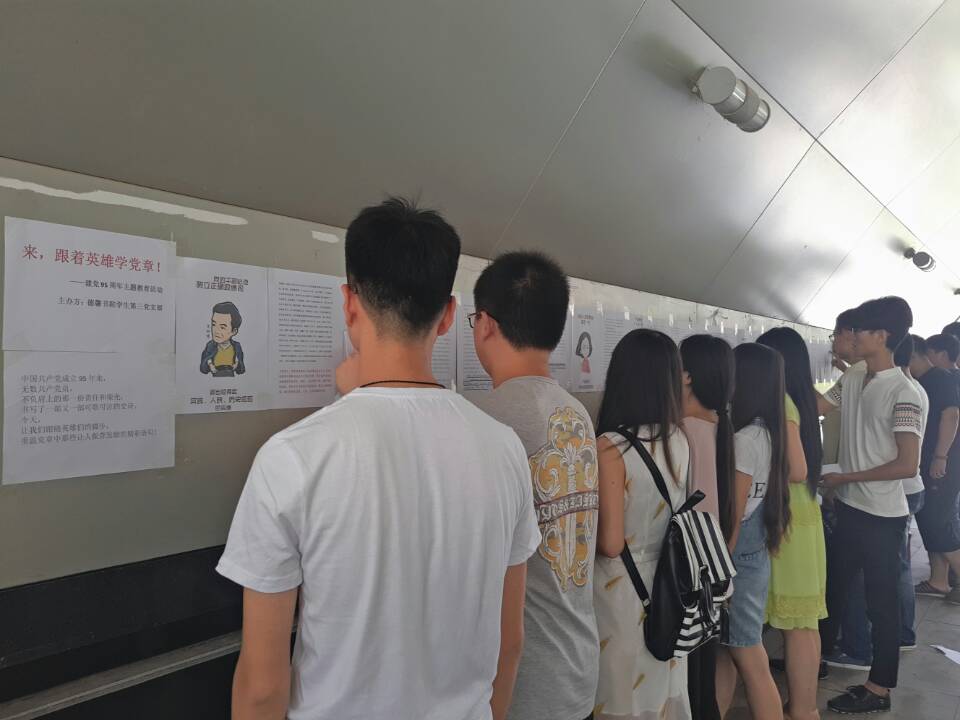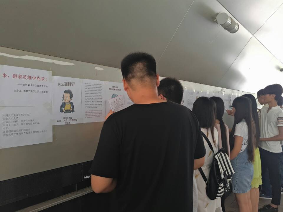 为隆重庆祝中国共产党成立95周年,推动“两学一做”学习教育深入开展,我院学生第三党支部召开纪念建党95周年系列活动。6月20日,“跟着英雄学党章”活动在平原新区成功举办,德馨书院学生第三党支部全体党员参加。