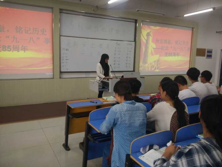 党支部书记刘璐首先带领大家回忆了85年前九一八事变的爆发原因、事件影响以及历史意义等,鼓励新时代的同学们,要发愤图强、牢记历史、怀抱梦想,并以此来激励同学们共同努力、走向成功。学生党员连鹏哲与同学们一起重温了杨靖宇、赵一曼等英雄事迹,号召同学们向英雄人物学习,锐意进取,自强不息,艰苦奋斗,顽强拼搏。活动现场,全体学生党员、积极分子观看了关于“九一八”的纪录片《档案》,一帧帧老照片、一段段老视频、一节节极具历史价值的录音,强烈地冲击了同学们的眼球,使同学们更加深入地了解到当时的历史现状,也更加明白做为当代大学生应该肩负的重大责任。
