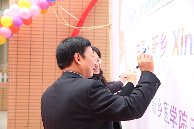 仪式开始,王志凯致开幕词、台湾中华医事科技大学交换处处长洪芸樱、德馨书院学生代表发言,德馨书院党总支书记金靖芝宣布此次活动正式开幕。各位领导老师、志愿者纷纷在幕布上签字,与此同时,馨书院门口分别设立了“中国馆”、“亚洲馆”、“美洲馆”、“大洋洲馆”、“欧洲馆”、“非洲馆”六个展示区,展示这些区域的地理、人文知识。我院领导老师及来访的台湾师生代表共同参观了各个展区。