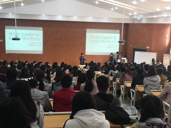 3月21日下午,2014级医学检验技术大班学生与2016级专升本医学检验技术专业学生于D2大教室进行了检验技能大赛的动员大会。在检验影像学院胡淼院长与辅导员侯永爽老师参加了此次大会。