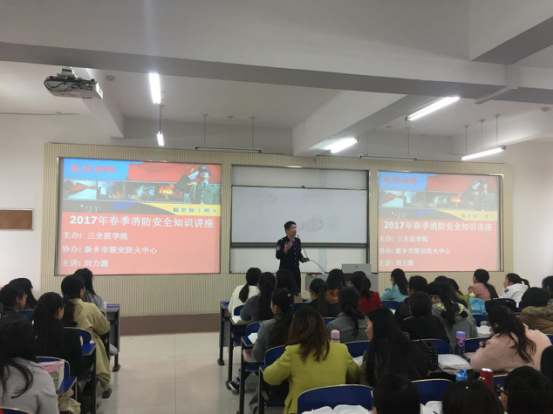 为增强大学生的安全防范意识,提高大学生面临火灾等危险的应对能力,3月23日下午,新乡市联安防火中心刘立源警官应邀来我院开展以“消防安全”为主题的安全教育专题讲座。讲座在平原校区第一教学楼B302教室举行。