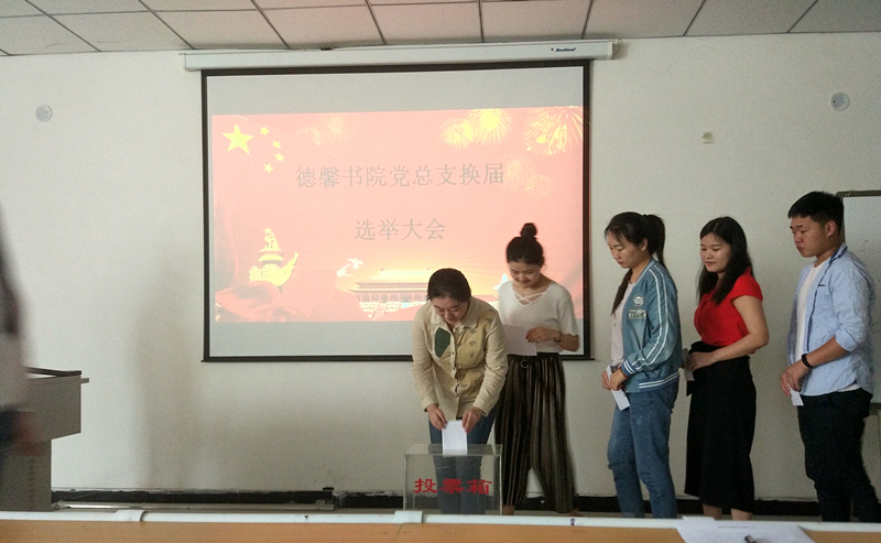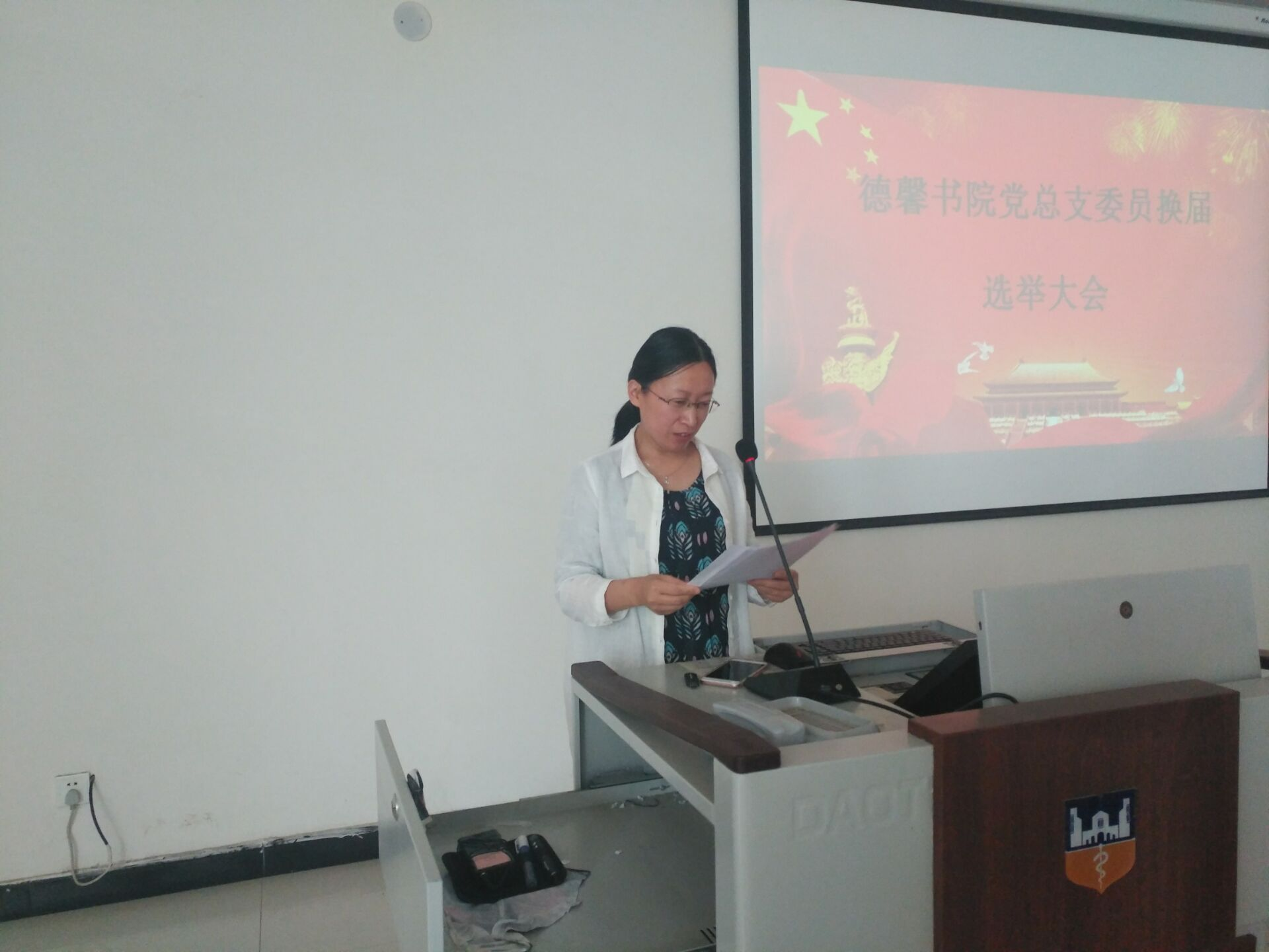 6月6日在第一教学楼C202举行了德馨书院党总支委员换届选举大会。党务办公室主任吕莎、德馨书院党总支书记金靖芝及全体教职工党员、学生党员、预备党员参加了此次会议。