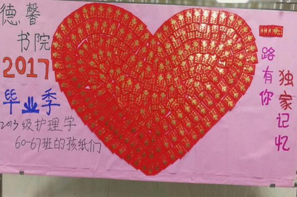 通过本次班会的召开,体现了辅导员杜佳老师对同学们深切的期望与不舍,也把2013级护理大班师生之间浓厚的情谊满满地表达出来,营造了和谐的校园氛围,为毕业生加油打气!