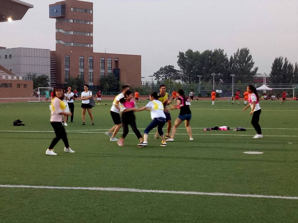 首先由大班长赵志浩介绍游戏规则,各班学生在熟悉过游戏规则后,迅速的穿好游戏专用装备。随着一声哨响,活动正式开始,身穿黄色粉色的队员们,你追我赶,彰显青春活力与朝气。随着双方各有成员名牌被撕下出局后,游戏进入白热化,现场比赛愈发激烈。