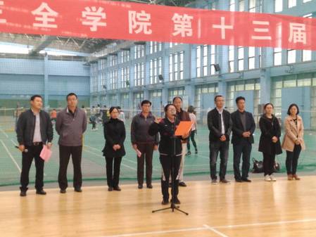 10月16日中午,新乡医学院三全学院2017年球类运动会开幕式在体育馆隆重举行。我院教务长杜华贞出席,学务部、院长办公室、体育部、书院等相关部门负责人、教师及运动员代表参加开幕式。