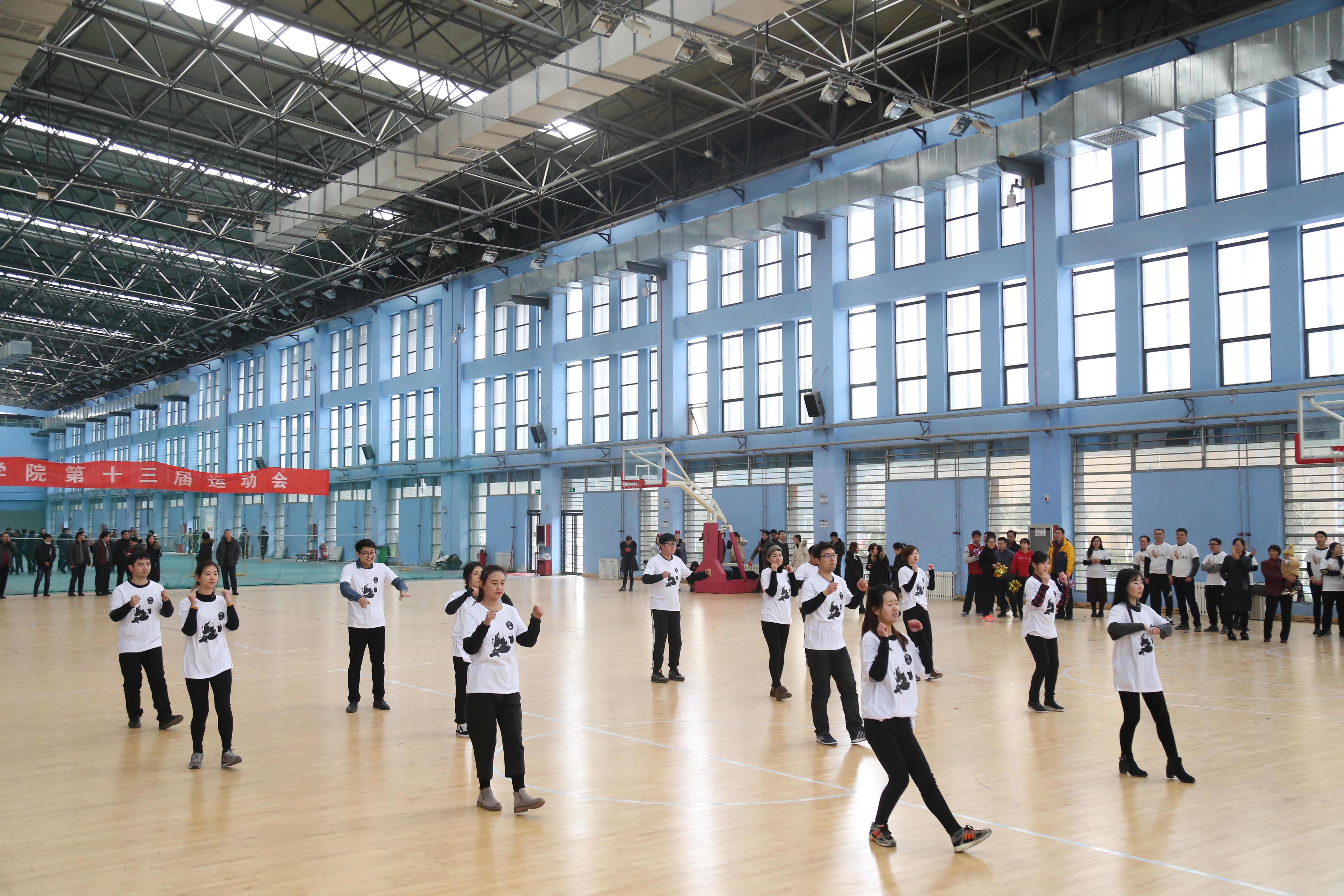 12月13日中午,由院工会主办、医学工程学院工会和德馨书院工会联合承办的第四届教职工工间操比赛在平原校区体育馆举行。我院党委副书记张钢、教务长杜华贞现场观看了比赛。
