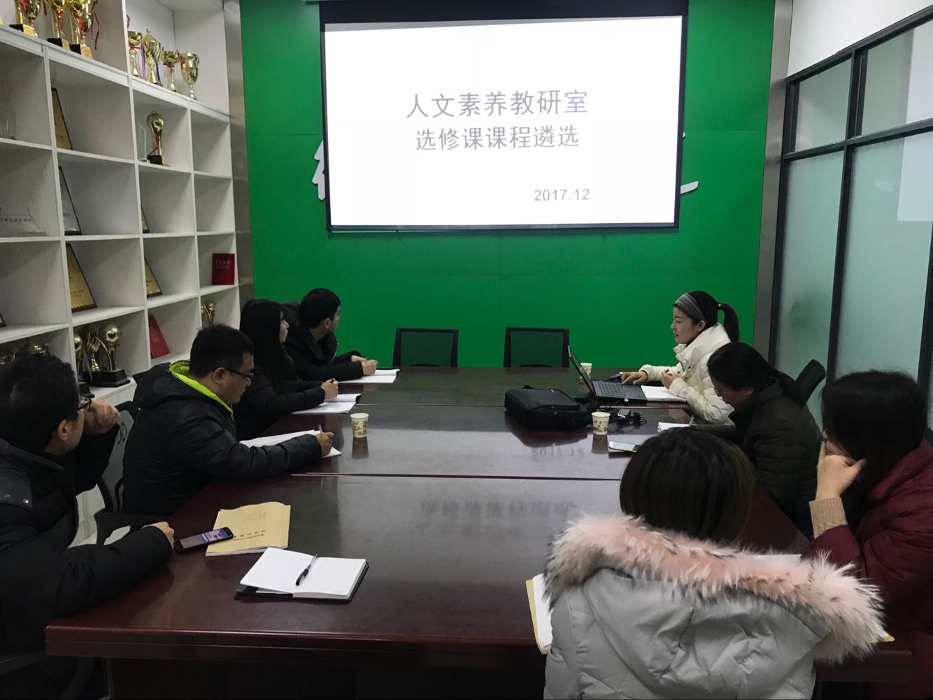 12月14日上午,德馨书院人文素养教研室在德馨书院会议室举行了12月份集体备课和2017-2018学年第二学期选修课课程遴选会,本次会议由段玉凤老师主持,德馨书院党总支书记金靖芝老师和书院辅导员参加。