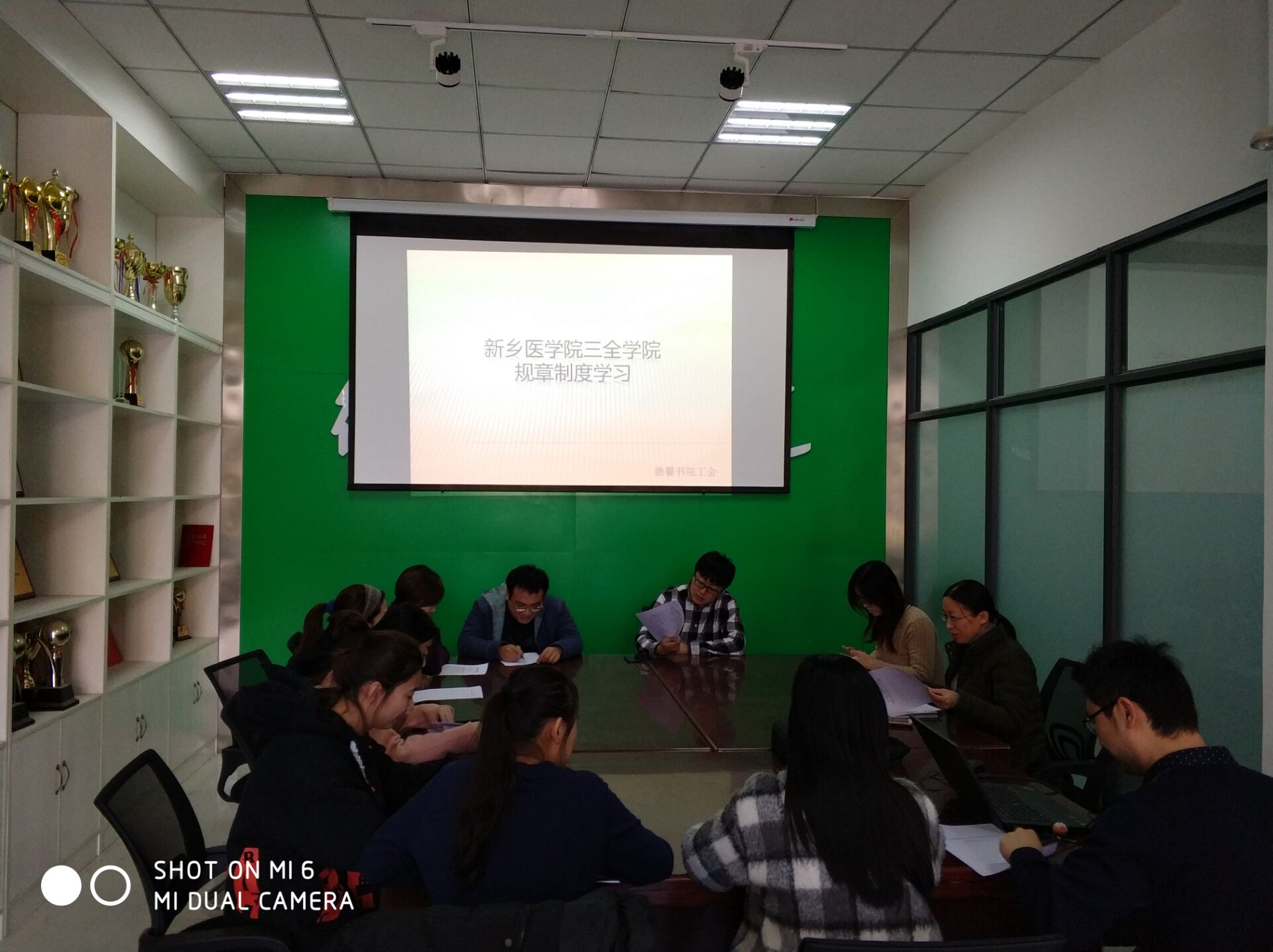为了让德馨书院全体教职工更加了解我校的规章制度,认识到遵守规章制度的重要性和紧迫性,德馨书院工会于12月1日特组织全体教职工对新乡医学院三全学院的各项规章制度进行了学习,制度涉及教务部、学务部、人力资源部等各个部门。