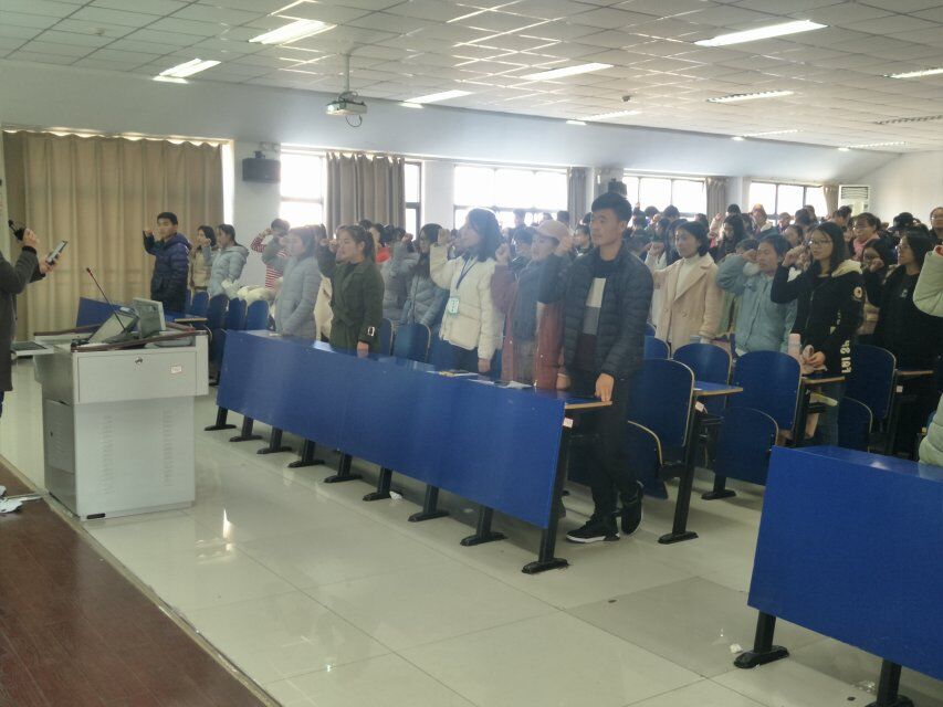活动开始前,由一段有关诚信考试视频引出本次讲座主题--让同学们认识到诚信考试的重要性。随后,活动的主持人对本次讲座内容做了描述并对本次活动特邀学生代表做了简单介绍,他们分别是16级李许硕、17级苏涛和17级宋思源 。首先上台的是16级李许硕同学,因为在学校已经有了一年的学习经验,所以她根据个人经历为大家讲了学校对于考试的重视态度,提醒每位同学要端正自己面对考试的态度并着重为大家讲解了关于学校考试时的考风考纪,最后又为大家讲解了考试流程使17级同学对即将来临的大学第一考做好准备。接下来是两位来自17级的同学,他们为大家分享了自己对大学考试的理解以及自己在考前复习的技巧。接踵而来的是此次活动的重点环节--由学生会志愿者代表带领在坐全体同学进行诚信考试宣誓,目的是为了要求学生严守考试纪律,维护考试秩序,做文明诚信的大学生。