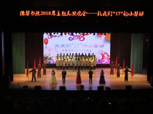 为丰富同学们的校园文化生活,展现当代大学生良好的精神风貌,12月25日晚,由德馨书院举办的“致我们17的小馨动”大型元旦晚会在闻德礼堂华丽上演。新乡医学院三全学院副院长秦国亮、党委副书记张钢、教务长杜华贞、护理学院党总支副书记杨昕岳、德馨书院党总书记金靖芝以及各位老师与书院学生带着对新的一年美好期盼欢聚一堂,共度良宵。