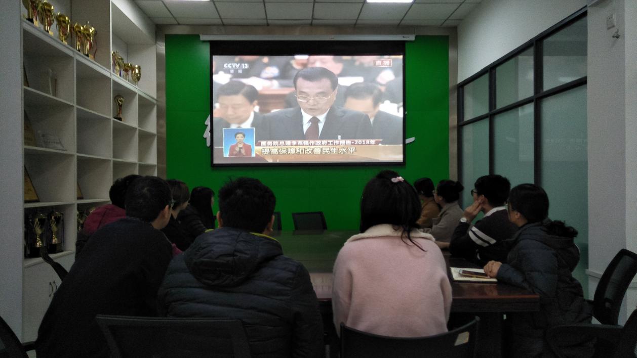 3月5号上午9点,德馨书院党总支组织全体职工党员在办公室观看第十三届全国人大一次会议开幕式。
