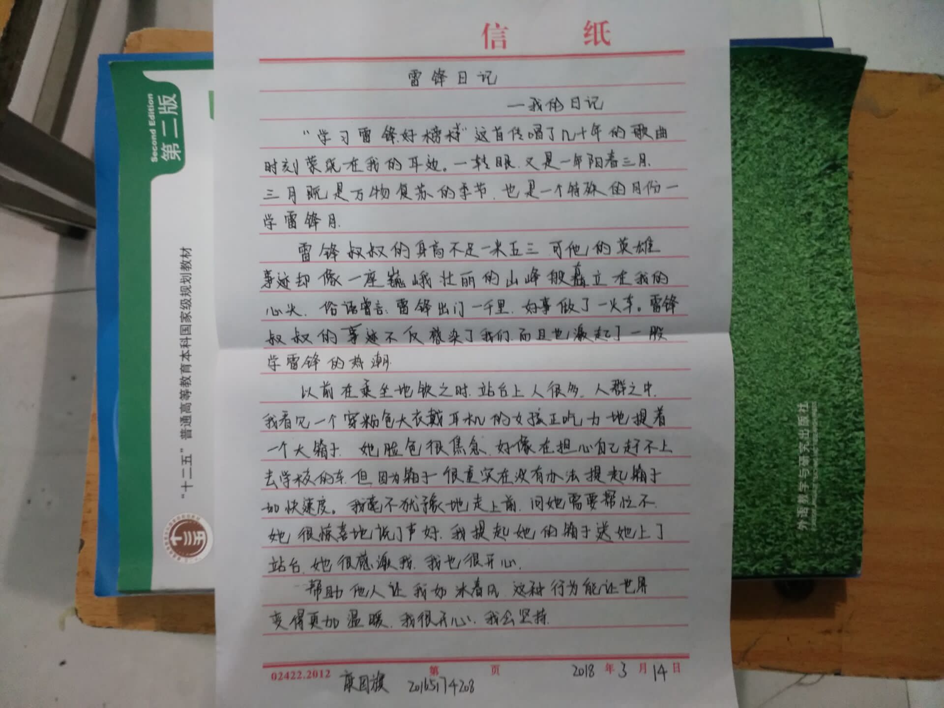 一张张写满了“雷锋故事”的日记引得同学们驻足,德馨学子们纷纷将自己的故事以及身边所发生的感人事迹写了下来:“有时候志愿服务仅仅是举手之劳,公交车上为老人让个座,为感冒的同学打一瓶热水,教留守儿童识一个字……这些我们都可以写在‘雷锋日记’上。”前来书写“雷锋日记”的同学说道,“希望我们的日记能一届届传递下去,让新时代的雷锋精神能够得到传承。我们身边有许多的榜样,他们会放弃休息时间陪聋哑儿童过周末,他们会不计回报为困难群众提供法律援助,将他们的‘平凡’事迹记录下来,不仅记录下了自己的大学美好时光,也更为他人树立下了榜样,这就是我们新时代的雷锋。”学生们对于此次“雷锋月”系列活动感慨良多,也收获了许多。