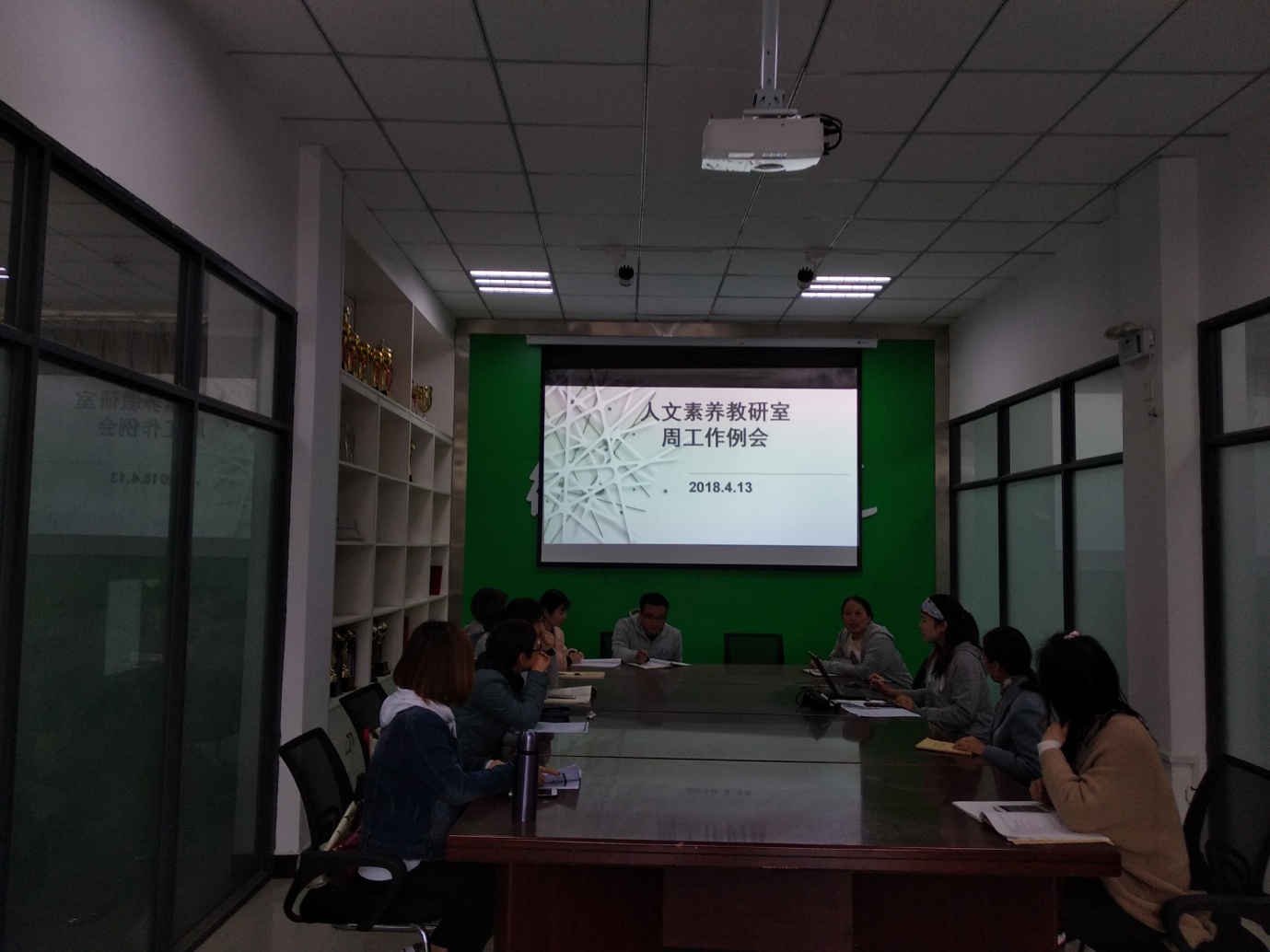 会议第一项议程召开周工作例会,会上明确了下周上课事宜,核对了课程表及教学日历,并对课件等备课情况进行了了解;其次通报了通识教育管理中心对教学工作的要求及相关会议精神,要求全体老师按时做好查课听课等相关工作。