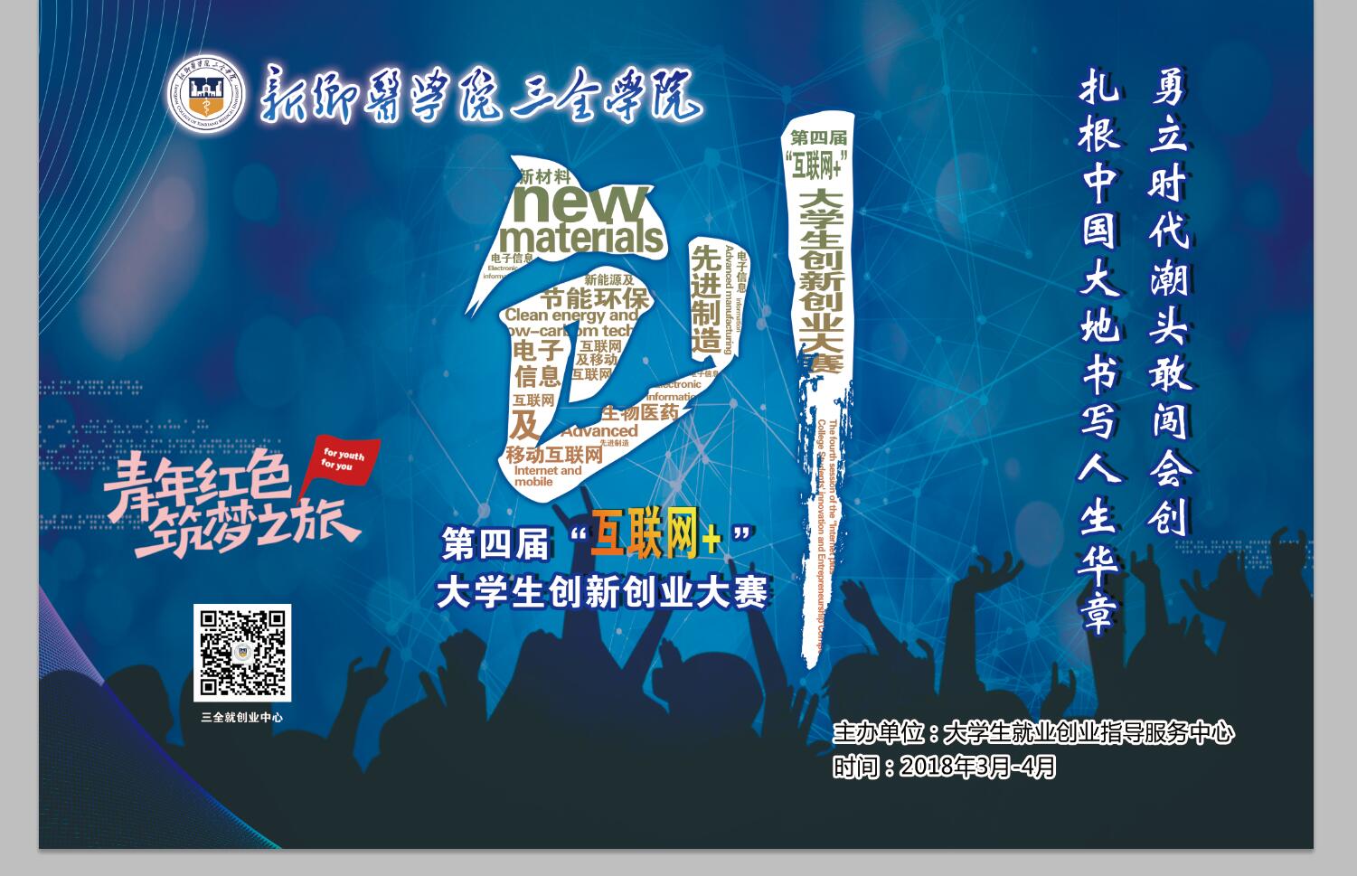 为切实提高大学生的创新精神、创业意识和创新创业能力,激发我校学生创新创业热情,进一步营造良好的创新创业氛围,我校以“勇立时代潮头敢闯会创扎根中国大地书写人生华章”为主题,组织开展第四届“互联网+”大学生创新创业大赛。