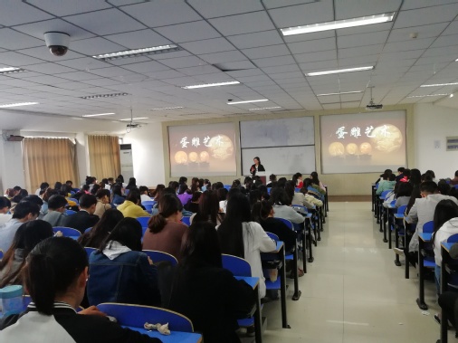 本次活动播放了蛋雕界的几位大师对蛋雕的理解以及他们的优秀作品。播放期间,在场学生被这些蛋雕作品深深震撼,纷纷为大师的蛋雕技艺喝彩。大师们在这一碰即破的蛋壳上,逬行艺术创作,使它成为艺术品,变速朽为永恒。蛋雕艺术是一门神奇而特殊的艺术,它融雕刻与绘画于一体。如今,人们将鸡蛋钻孔掏空,在蛋壳表面雕刻精美图案,形成了具有较高欣赏价值的艺术珍品。蛋雕作品种类繁多,有人物肖像、花鸟鱼虫、京剧脸谱、诗文字画,主辅相衬十分得当,惟妙惟肖斗艳争芳。但不可否认的是它的小众化,以及它逐渐走向消亡的趋势。