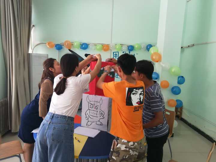 此次活动分为答案棒棒糖,水果拼盘,真言之口,发泄盒子等多个小环节,使同学们在游戏中充分放松心灵。其中水果拼盘活动将现场气氛点燃,同学们分成六个组,每组两位同学进行活动,同学们相互配合,各抒己见,热情洋溢地在有限的水果和空间下,发挥各自独特的想象力和团队合作能力对水果进行雕刻、拼接。从同学们创意满满的作品中,可以看出大家对生活的思考。高涨的气氛引来了大批同学的围观。发泄盒子,真言之口让同学们在发泄自己情绪的同时,对心理咨询室有了充分的了解。在同学们围成一圈写自己心中的烦恼进行发泄盒子活动时,党总支书记金靖芝走进心理咨询室,首先对此次活动表示了肯定,并且指出了此次活动的不足之处,希望以这种形式为基础将心理健康活动继续下去。最后,答案棒棒糖活动给同学们带来了惊喜,同学们在参加活动前把自己的疑惑写在便利贴上,活动结束后负责人把解答的内容和棒棒糖交给同学。在一片欢声笑语中此次活动圆满结束。