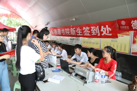 天刚蒙蒙亮的时候,德馨书院工作人员已经开始布置场地,对迎新的各个环节进行安排。迎新工作开始后,辅导员以及志愿者以最灿烂的笑容迎接新生及家长,为他们解答疑惑;志愿者帮助新生搬运行李,做好接待工作,维持整个迎新现场的秩序;德馨书院还划分了家长休息处,行李存放处等区域,时刻为新生及家长提供方便;在紧张有序的工作中,志愿者迅速的帮助学生完成信息注册、缴费、入住宿舍等报到手续。迎新期间,学校领导以及书院领导前来看望迎新工作人员,了解迎新动态,为新生解决困难,并亲自指导新生进行报道。