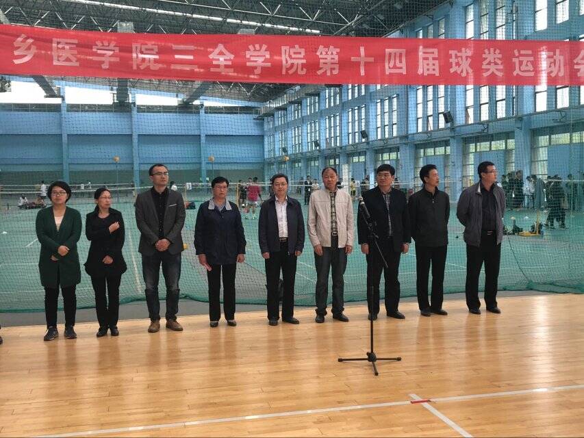 新乡医学院三全学院第十四届球类运动会开幕式于2018年10月15日中午12:00在体育馆隆重召开。在运动员及啦啦队的欢呼声中,教务长杜华贞对第十四届球类运动会致词,现场气氛高昂,出席此次开幕式的有各个书院领导及嘉宾,也正是由于他们的参与,才使得此次开幕式更加圆满。