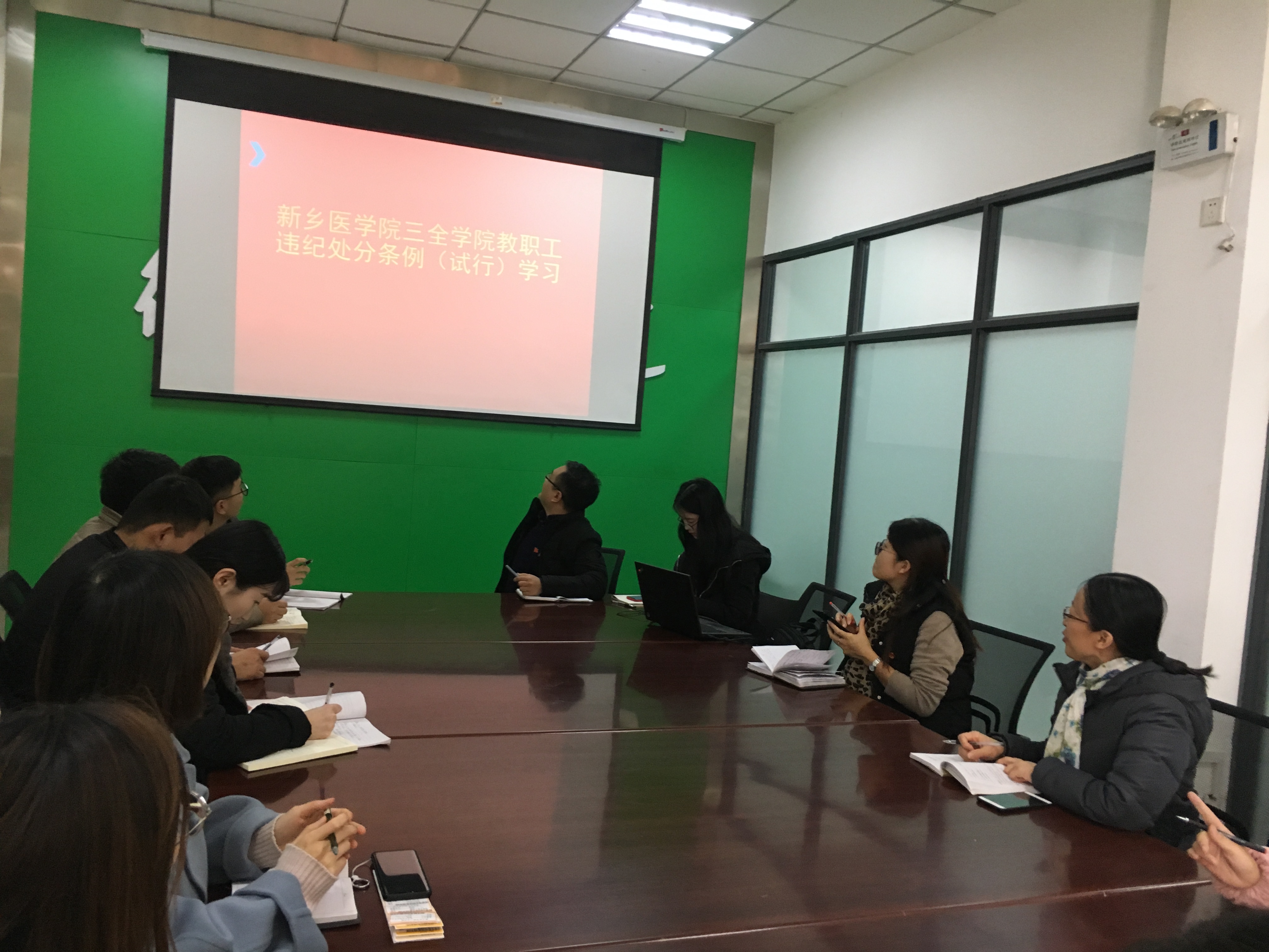 本次学习的主要内容是《新乡医学院三全学院教职工违纪处分条例》、《新乡医学院三全学院重点部位和关键环节监督办法》,并在学习完两个文件之后,每位职工在知晓书上签字确认。