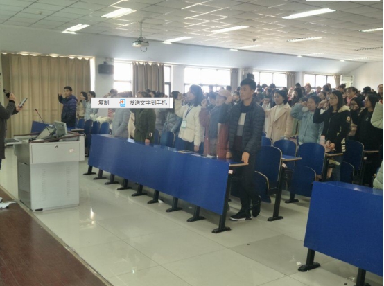 活动开始前,由一段有关诚信考试视频引出本次讲座主题--让同学们认识到诚信考试的重要性。随后,活动的主持人对本次讲座内容做了描述并对本次活动特邀学生代表做了简单介绍,他们分别是16级李许硕、17级苏涛和17级宋思源 。首先上台的是16级李许硕同学,因为在学校已经有了一年的学习经验,所以她根据个人经历为大家讲了学校对于考试的重视态度,提醒每位同学要端正自己面对考试的态度并着重为大家讲解了关于学校考试时的考风考纪,最后又为大家讲解了考试流程使17级同学对即将来临的大学第一考做好准备。接下来是两位来自17级的同学,他们为大家分享了自己对大学考试的理解以及自己在考前复习的技巧。接踵而来的是此次活动的重点环节--由学生会志愿者代表带领在坐全体同学进行诚信考试宣誓,目的是为了要求学生严守考试纪律,维护考试秩序,做文明诚信的大学生。