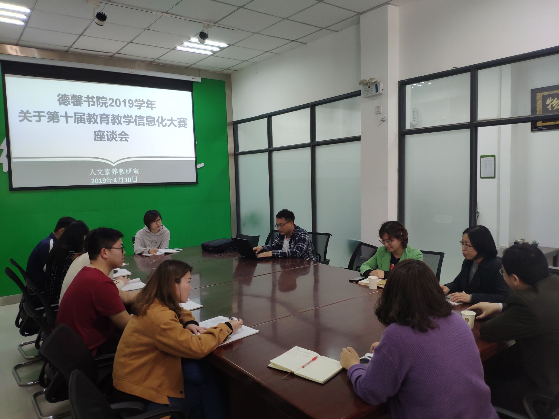 近日,我校举办第十届教育教学信息化大赛,为了对此次大赛进行答疑解惑并与教职工交流想法,“教育教学信息化大赛座谈会”于4月30日在德馨书院召开。教学技术中心主任赵俊强、教学技术中心主任助理程巍、德馨书院党总支书记金靖芝、党总支副书记平丹丹与德馨书院全体辅导员参与了此次交流探讨会议。