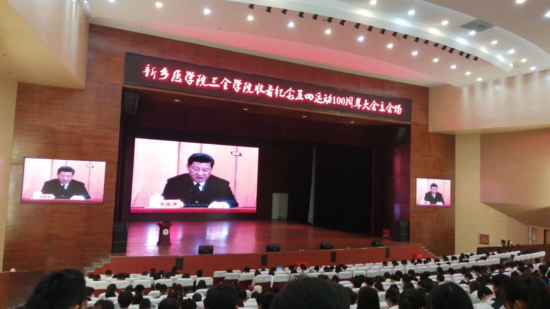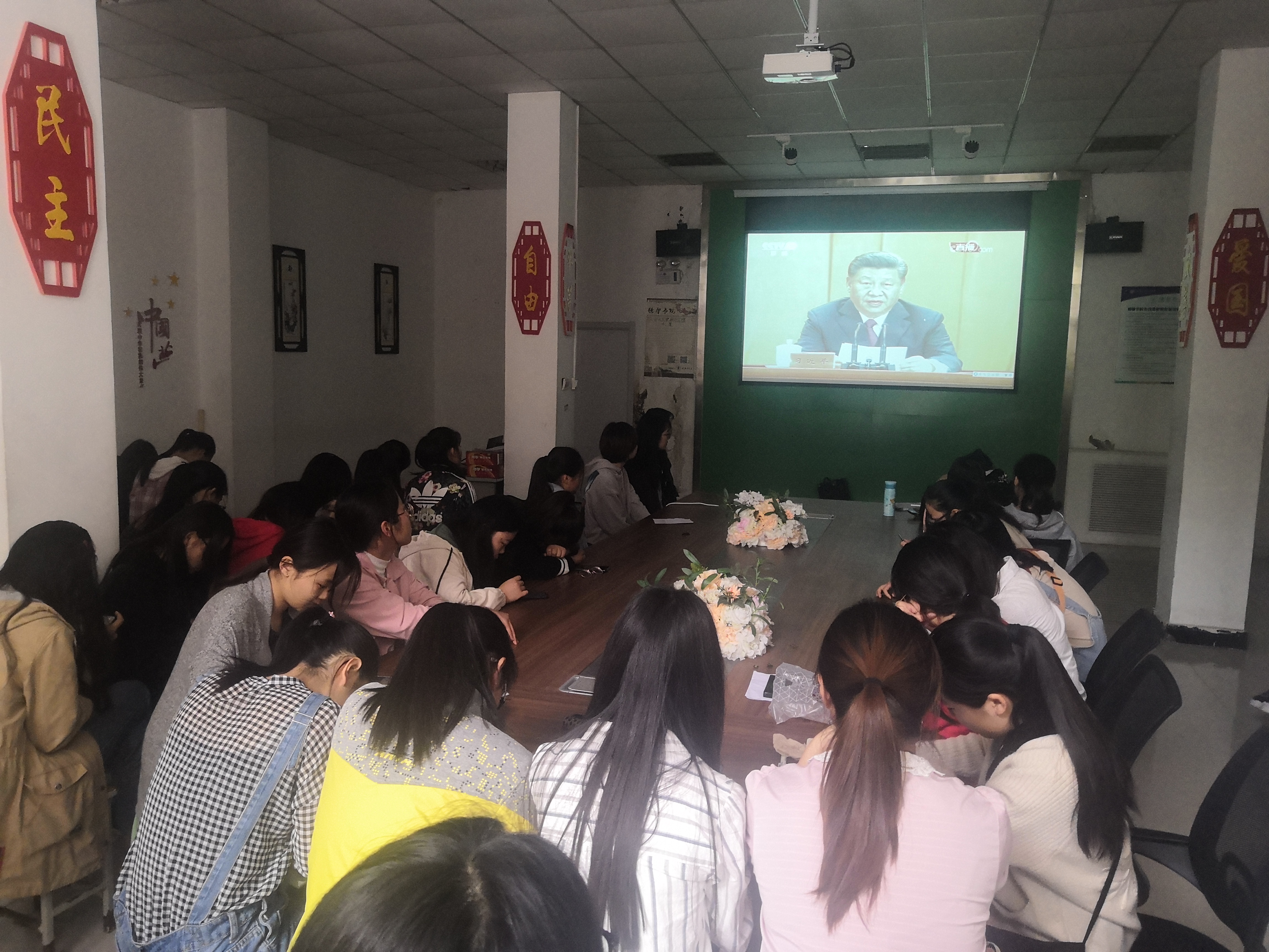 为庆祝五四运动100周年并提高当代大学生的爱国积极性,根据团中央书记处统一部署,德馨书院于4月30日上午在闻德礼堂和德馨书院党员办公室积极组织广大团员青年和团干部集中收听收看大会直播,认真学习习近平总书记在纪念五四运动100周年大会上的重要讲话。首先,负责老师做了相关讲话。接下来,活动正式开始。