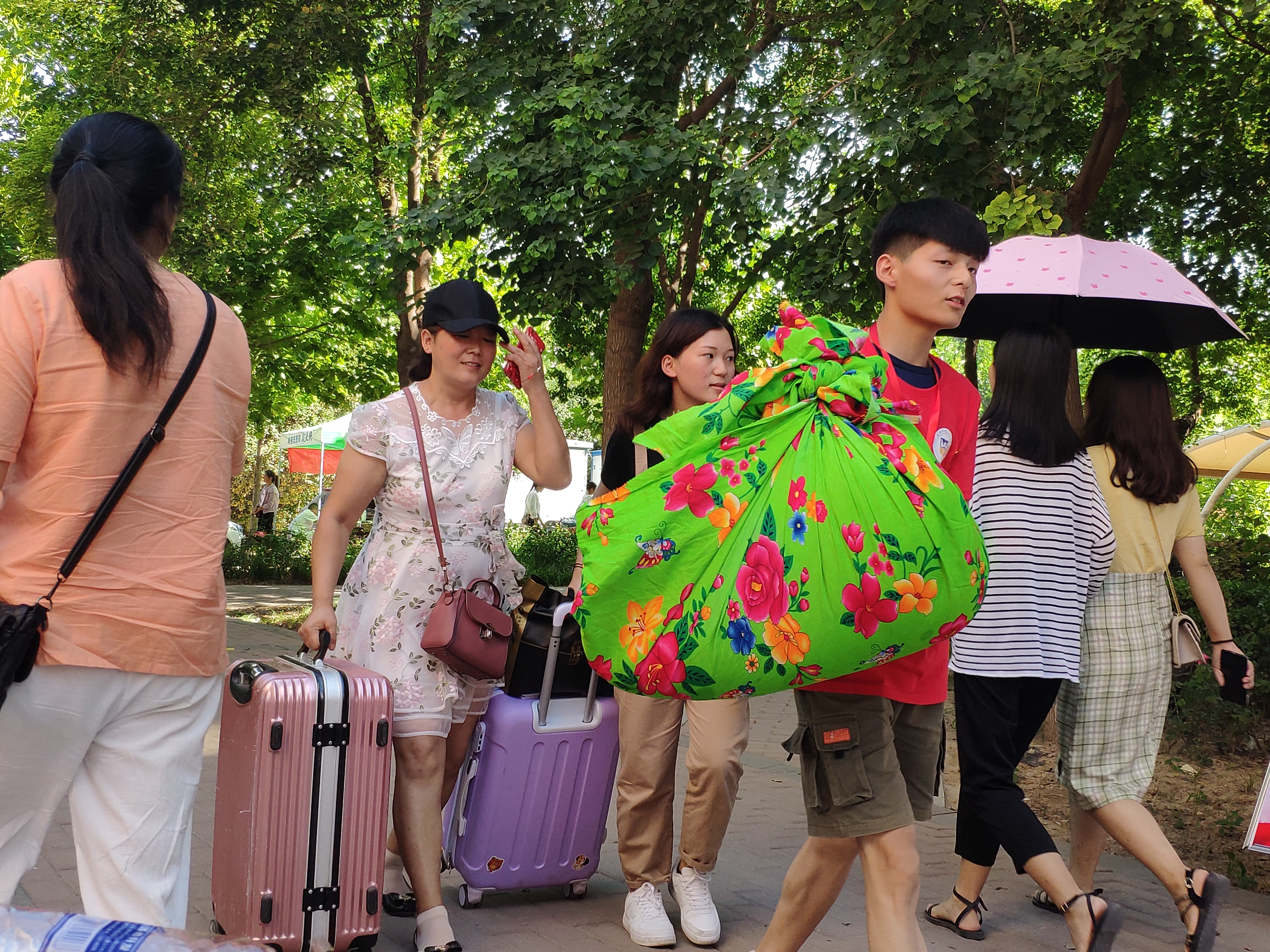 今年大部分新生是在家人的陪同、同学间有组织性的来学校报到,而有另外一部分新生则只身前往学校报到。在两种截然不同的情况下,只身前往学校报到的新生则多因为父母工作原因无法抽身前来。一些独自前来的新生,可以借助这一次的远行证明自己逐渐变得成熟,可以独立在异乡完成学业,德馨书院的志愿者们也积极细心引导新生完成报道流程,带领新生办理住宿等,烈日下,看到的是满头大汗却笑容灿烂的迎新工作者们,是高温下仍坚持工作的老师和同学。有一些新生自发加入迎新志愿者的队伍,德馨书院对这些热情的新生们表示诚挚的感谢。