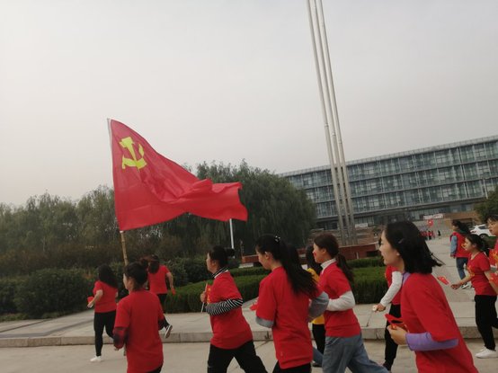 此次红十月活动之奔跑吧,党旗共有一百多名志愿者参加,只见志愿者们身穿红色短袖,党员代表穿着黄色衣服,领导人员一声令下,志愿者们迅速站好队。所有人员脸上贴着带有五角星的红色脸贴,手中挥舞着五星红旗蓄势待发。由德馨书院门洞处出发依次穿过行政楼、大医精诚石碑、闻德礼堂等打卡地点,到每个打卡地点后各支队代表将以问答的形式作答有关党建等知识问题以此怀念中国共产党的建党历程。打卡目标完成后,德馨书院共产党党员和共产党预备党员进入新时代展馆进行入党宣誓,他们如火的热情感染了经过的每个人。奔跑道路上时不时能看到工作人员忙碌的身影,他们穿梭于人群中,引导每个方队不断向前进。奔跑是一种状态,奔跑的过程不可能一帆风顺,但是在由中国共产党开辟的道路上奔跑,这是一种幸福。