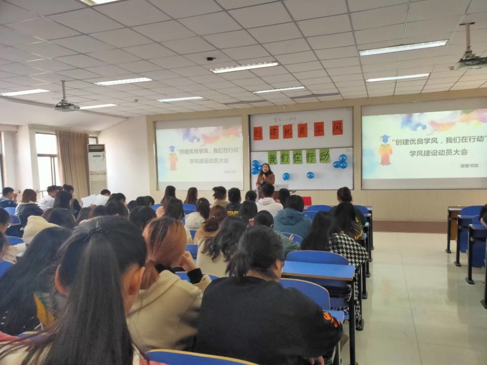 在会上,德馨书院党总支副书记平丹丹向全体学生致词,她勉励同学们首先要凝心聚力,统一思想,自觉树立“营造优良学风从我做起”的意识;其次剖析问题,明晰任务,学会独立思考,端正学习态度,养成良好的学习和生活习惯,全面提高自身的综合素质与创新能力;再次,严格要求,身体力行,遵守学校各项规章制度,从自身做起,营造良好的学习氛围,共同促进良好的学风的形成。