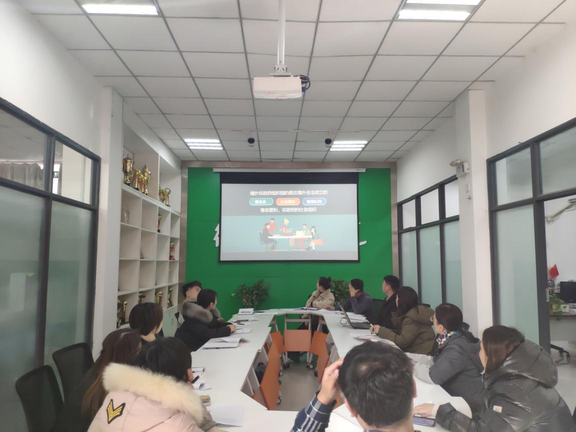 2019年12月30日,德馨书院党总支书记金靖芝带领教职工学习了《管理法》宣传视频,发放《管理法》宣传资料,认真学习《管理法》总则、登记和备案、活动规范、监督管理、法律措施等方面的政策,积极进行普法知识的学习。生活老师也在寝室机器上播放了宣传视频、进行图片展览的方式,加强学生对《管理法》的了解。同时,德馨书院网页和微信上推送《管理法》相关资料、视频、图片,拓展学生学习《管理法》的平台。