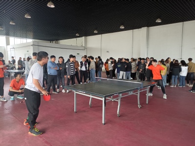 10月26日中午12时体育馆内,我校成功举行了由德馨书院与精诚书院的男子乒乓球比赛,比赛秉承着公平、公正、公开的原则热闹而又有序的进行着。乒乓球在空中来回抛出优美的弧线,博得了一阵又一阵的喝彩声。现场的气氛十分的活跃,参赛选手们都以饱满的热情和高度的积极性,全身心的投入到此次比赛中,并且充分发挥了“敢打敢拼”的进取精神。比赛分为三局进行,观看比赛的同学们不时为参加比赛的选手们的绝妙扣杀而欢呼鼓劲,各位参赛选手在赛场上更是展开激烈的争夺,每个人都积极进取、奋力拼搏,打出水平、打出实力。选手们个个骁勇善战、敏捷不凡,一次次扣球振奋人心,比赛精彩迭出,观众们一个个激情澎湃,目不转睛地观看比赛,不时爆出阵阵掌声。