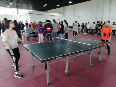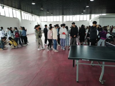 第一局,我方球队出场的是一个开朗活泼的女生,她右手拿球拍,左手拿球,抬头扫一眼对手,乒乓球划出了一个优美的抛物线。她不断变幻着脚步,矫捷的身姿,挡球,接球,发球。她不断的进攻,打得对手措手不及。这局稳赢了。在旁边加油助威的同学们笑着谈论。再来一个反杀,3比1。第一局德馨队暂时领先。