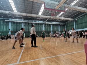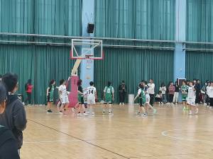 随着裁判员的一声哨响,中场休息时间到,队员们下场休息,球队负责人迅速送上水杯,为队员们补充水分,球员们也在一边重新安排人员上场,为下半场的进攻制定计划。下半场刚开始,我们德馨书院的球员便主动出击,又是一次连续传球,中距离出手,球进啦,场上的气氛瞬间被抬高,比赛进入了白热化阶段。在比赛进行一段时间后,崇德书院的队员可能是因为体力耗尽,防守能力下降,我方队员也是趁此机会连续进球,将分差拉大。