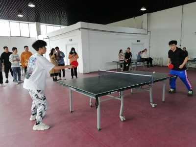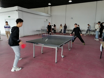 11月3号,中午12点乒乓球比赛如期而至。交战双方是德馨书院乒乓球队和崇德书院乒乓球队。队员们进入乒乓球室,同学们围观在桌球旁。两个球拍,一个乒乓球。一切准备就绪。