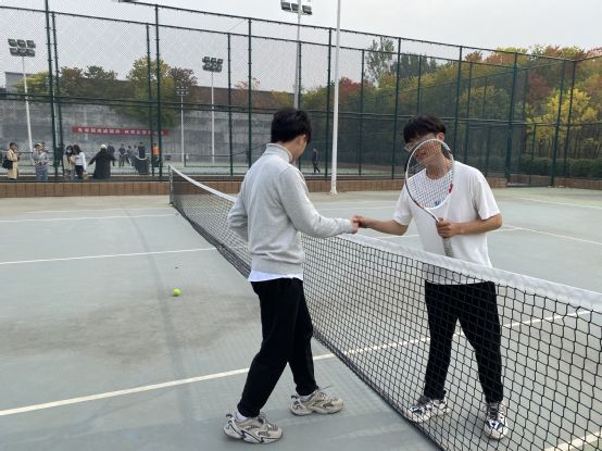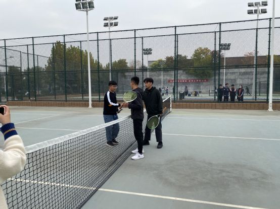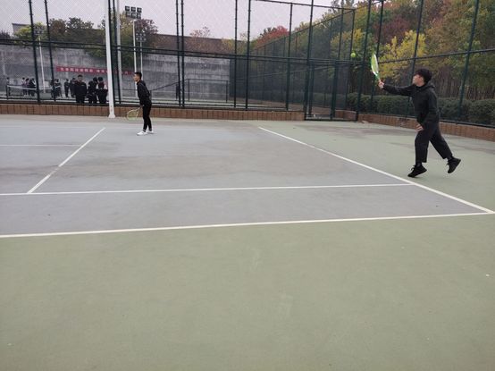 11月5日中午12点,最后一轮男子网球球比赛在网球场圆满结束。交战双方为德馨书院的男子网球队和仁智书院的男子网球队。