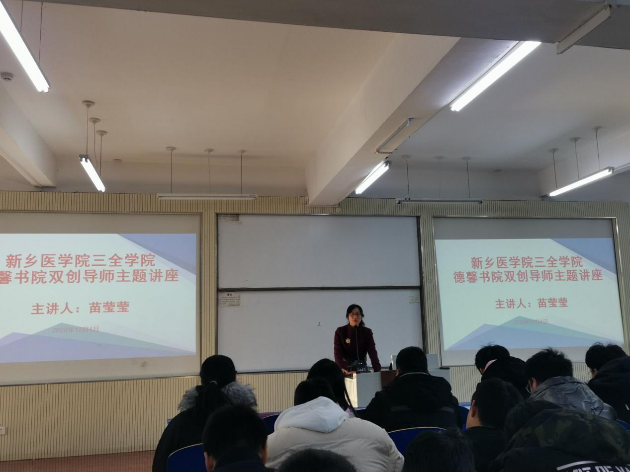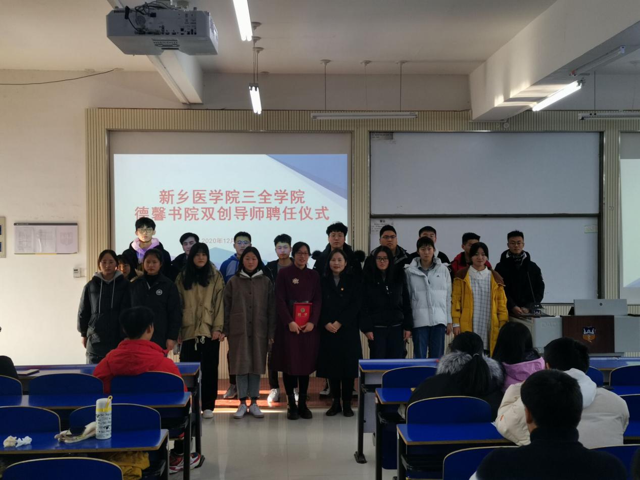 12月4日,德馨书院联合基础医学院举办了“双创导师聘任仪式”,基础医学院副院长苗莹莹、德馨书院党总支副书记平丹丹、书院辅导员以及德馨书院2020级临床医学专业和护理专业的学生代表近270余人参加了本次聘任仪式。