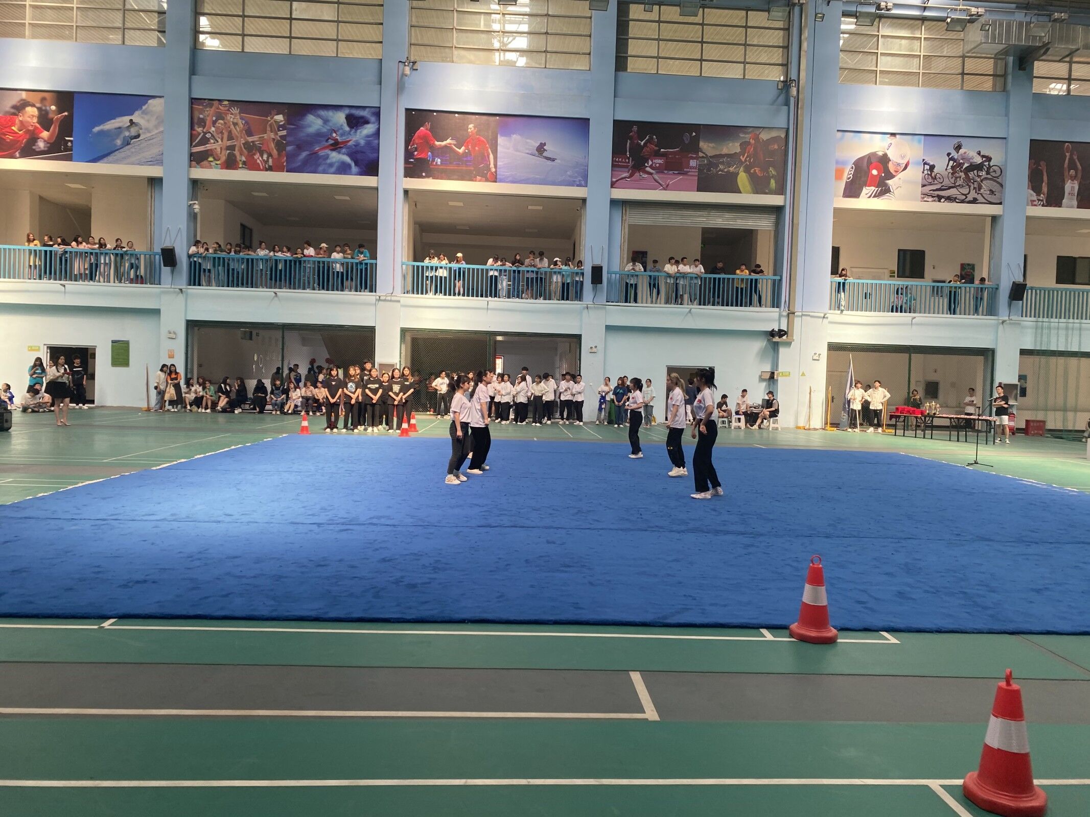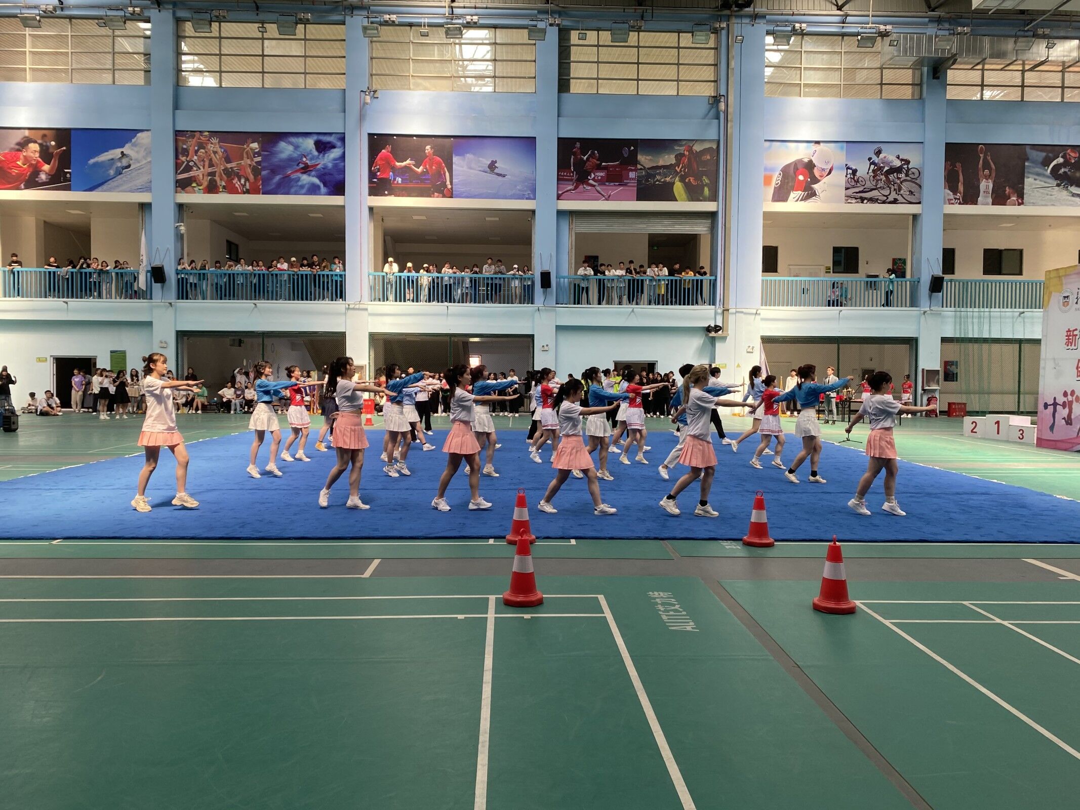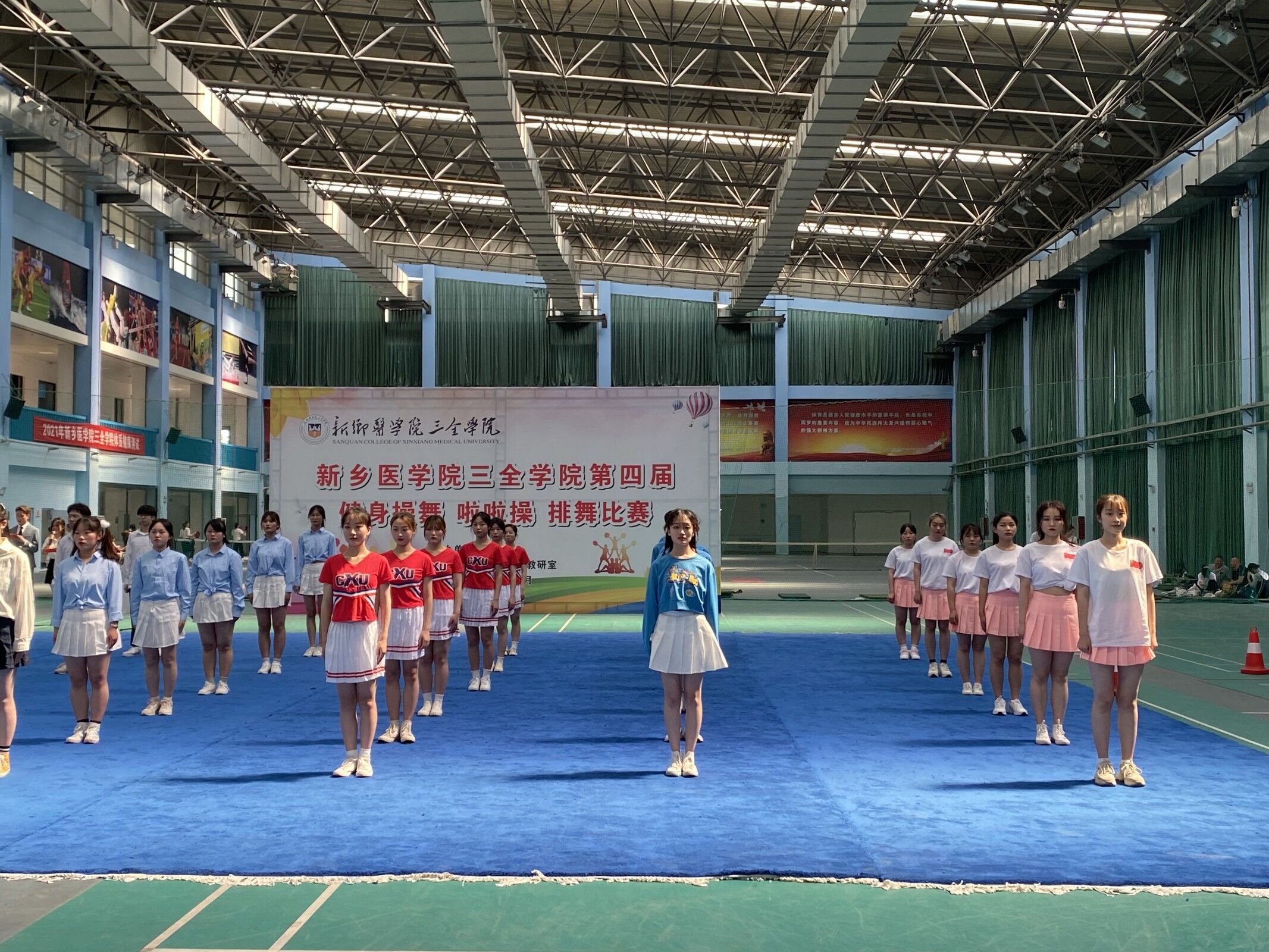 5月20日下午两点,我校啦啦操比赛在体育馆正式举行。此次参赛队伍由六个书院组成,比赛在轻快而又紧张的氛围中进行。