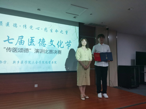 6月7日晚上,新乡医学院三全学院德馨书院于图书馆五楼多媒体会议室举行了以“讲医心医情,品医德医风”为主题的医德讲堂演讲比赛决赛。本次活动为“颂医德,传党心,感生命之重”医德文化节系列活动之一,是学校落实立德树人根本任务、弘扬优秀传统文化、培育和践行社会主义核心价值观的重要举措。
