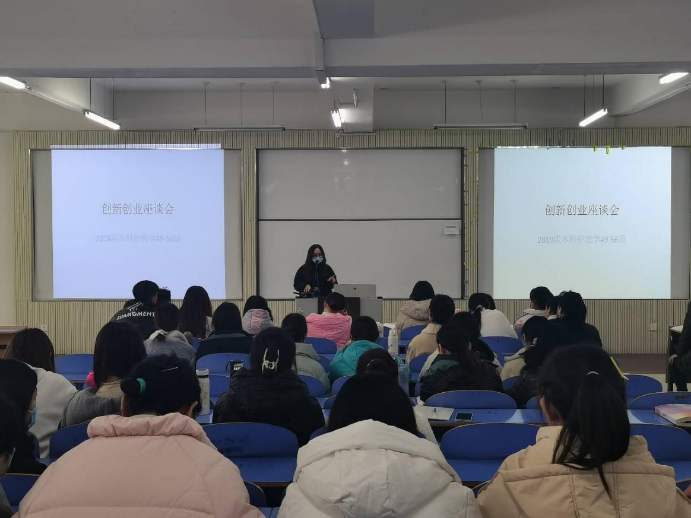 为激发学生就业创业热情,培养创新创业精神,德馨书院于12月10日在谨学楼教室开展创新创业座谈会,本次讲座会由护理学院侯艳飞老师主讲,师生代表参加。