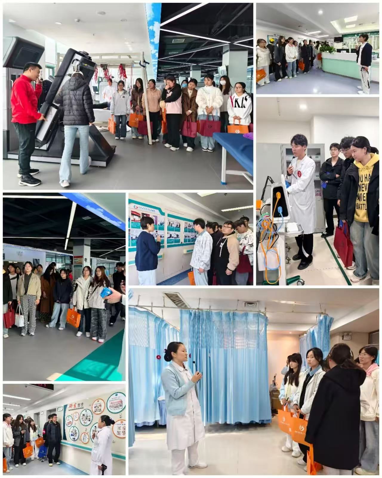 别走进脊柱微创外科病区、康复医学科病房、梅杰综合征诊疗中心、康复大厅及运动医学中心,从多元视角感受康复医学应用场景:俯身观摩康复评估的严谨流程,驻足见证治疗操作的精准细节与康复机器人的智能辅助,在与医护人员的简短交流中,体会特色诊疗背后的医学探索与技术研发中的攻坚克难。抽象的课本概念转化为鲜活的临床实践,让新生真切领略康复医学的专业魅力,触摸“医者仁心”的人文温度,理解康复是帮助患者重获生活尊严与生命力量的希望之光。