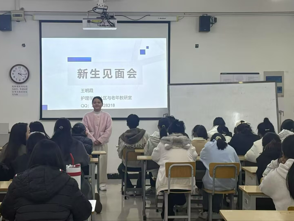 11月12日,2025级护理学专业54-55班全体学生在王宸珂老师的带领下,于谨学楼C301教室开展了以“写给4年后的你:一封护理专业的成长指南”为主题的学业指导会议。王宸珂老师围绕护理专业四年成长关键节点展开讲解,开篇明确护理职业核心是守护生命健康,既需扎实的专业能力,也离不开充满责任心的温暖关怀。随后,王宸珂老师分阶段给予具体指导:大一夯实基础医学课程与基本技能;大二深化专业知识学习,掌握进阶专科操作,做好医院见习准备;大三聚焦临床实习,提升实战与沟通能力,明确职业发展方向;大四完成实习总结与毕业论文撰写,备考护士执业资格证,做好求职准备。最后,王宸珂老师表示将全程陪伴学生,助力新生逐步成长为专业的护理人才。此次会议以未来视角为新生勾勒出清晰的四年成长路径,不仅帮助新生深化了对护理职业的认知,树立了专业信念,更有效驱散了其对大学学习生活的迷茫感,为后续分阶段落实学习目标、提升专业素养指明方向。
