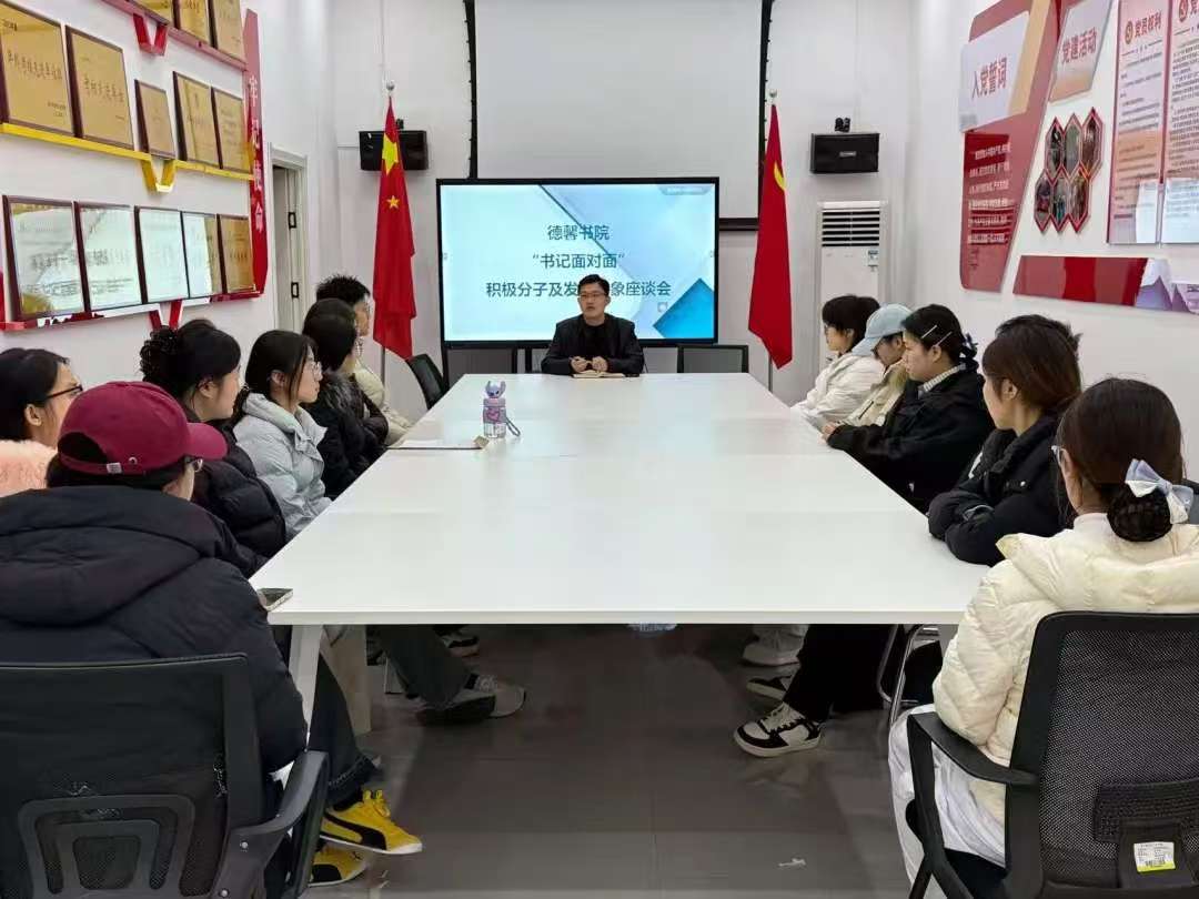 为进一步夯实党支部建设根基,搭建书院与入党积极分子常态化沟通桥梁,精准倾听学生心声、高效回应合理诉求,近日,德馨书院党委副书记刘波帆与书院入党积极分子代表齐聚一堂,以“共话成长·同谋发展”为主题召开面对面座谈会。书院相关负责人陪同参会,与同学们围坐畅谈、答疑解惑,共绘书院高质量建设与发展的崭新蓝图。