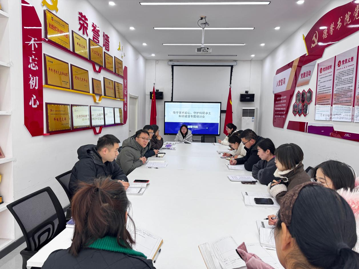 2025年12月22日,德馨书院在党建活动室成功举办了一场以“恪守学术初心,守护科研净土”为主题的科研诚信专题培训会。此次培训会不仅广泛宣传了科研诚信理念,还着重宣贯了《河南省科研诚信管理办法》,旨在提升书院师生的科研道德意识,共同营造风清气正的学术环境。