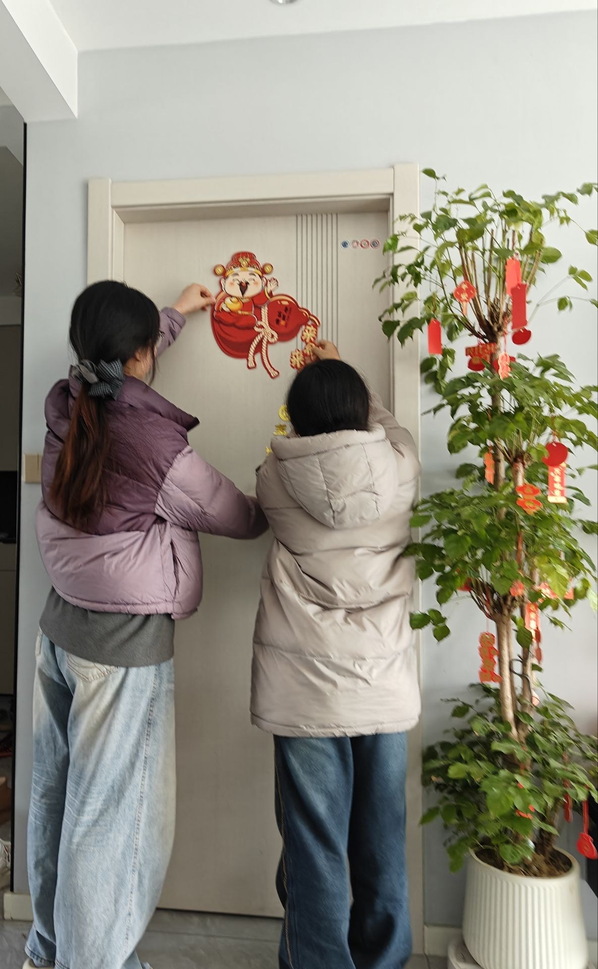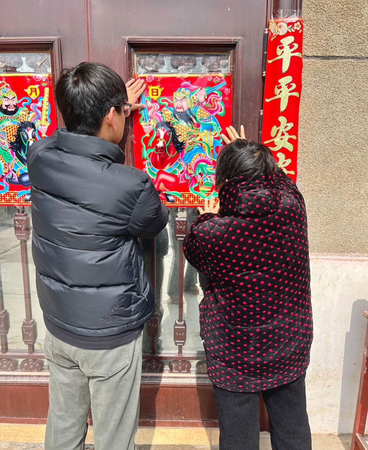 “除夕午后,阳光温柔地照在门前。我扶着奶奶站在门框下,她戴着老花镜,认真地帮我比对春联位置,嘴里还轻声念着吉祥的词句。我踮脚粘贴,她在一旁细心扶稳红纸,时不时叮嘱一句:‘贴正点,来年日子才顺当。’奶奶的手虽有些苍老,却满是温暖。红春联映着她慈祥的笑容,年味一下子浓了。一老一小,说说笑笑,简单的陪伴里满是温情。贴春联不只是添喜庆,更是把孝心、团圆和对新年的期盼,一起贴进家门,愿奶奶安康喜乐,岁岁常相伴。”