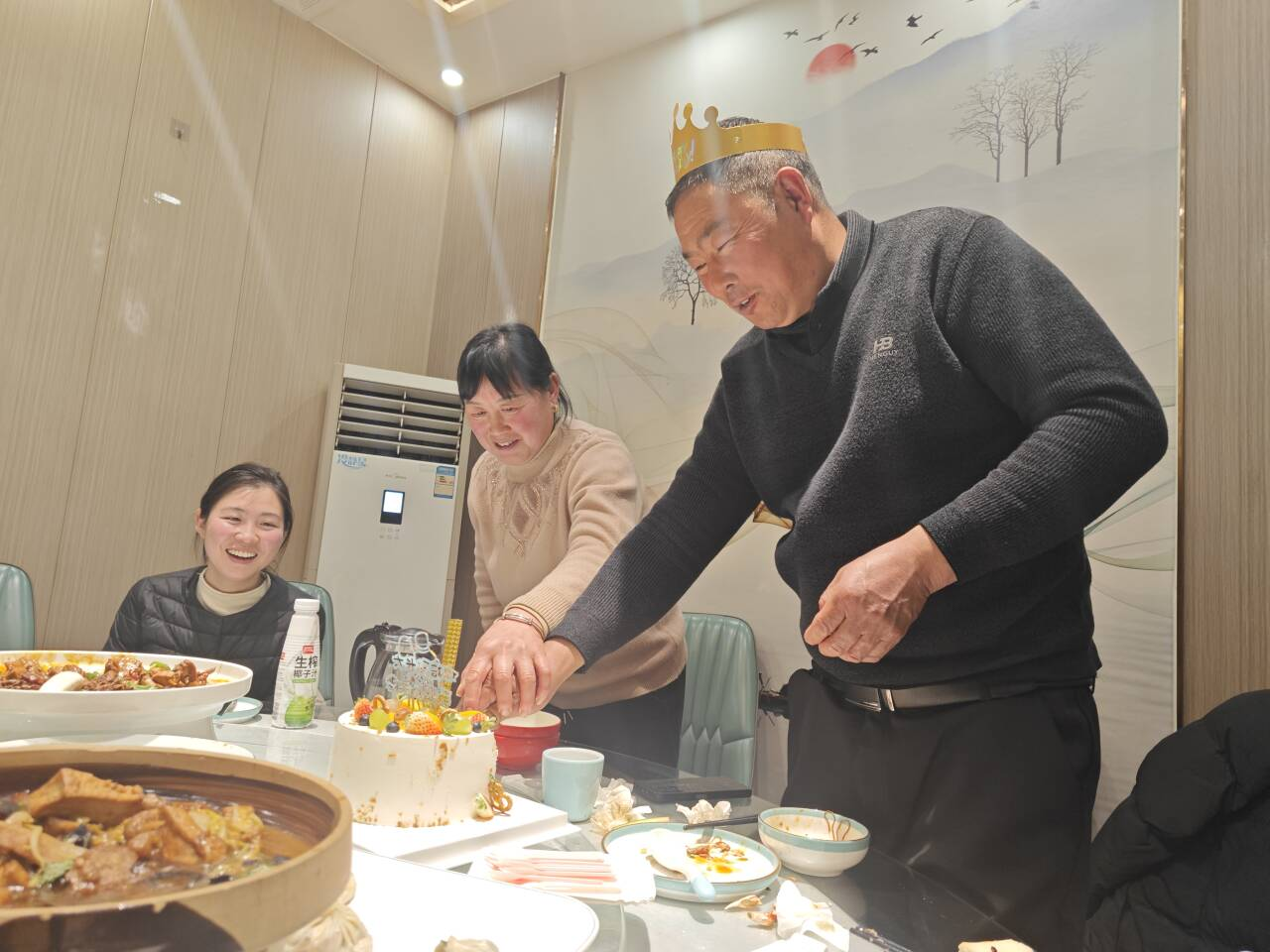 “这张照片定格了我为父亲庆祝生日的温馨瞬间。在饭店的包间里,母亲和父亲一起握着手,共同切下生日蛋糕。看着父亲脸上洋溢的笑容,我心中满是温暖。从小到大,父亲总是默默扛起家庭的重担,用坚实的臂膀为我遮风挡雨。如今我已长大,也想学着用自己的方式,为他撑起一片天。这次生日,我提前订好他爱吃的蛋糕,又特意选了这家他常念叨的饭店,点了一桌他爱吃的菜。在这个充满烟火气的房间里,没有华丽的辞藻,只有最真挚的陪伴。我知道,对父母最好的孝,就是常回家看看,多陪他们说说话,把爱藏在每一个平凡的日常里。”